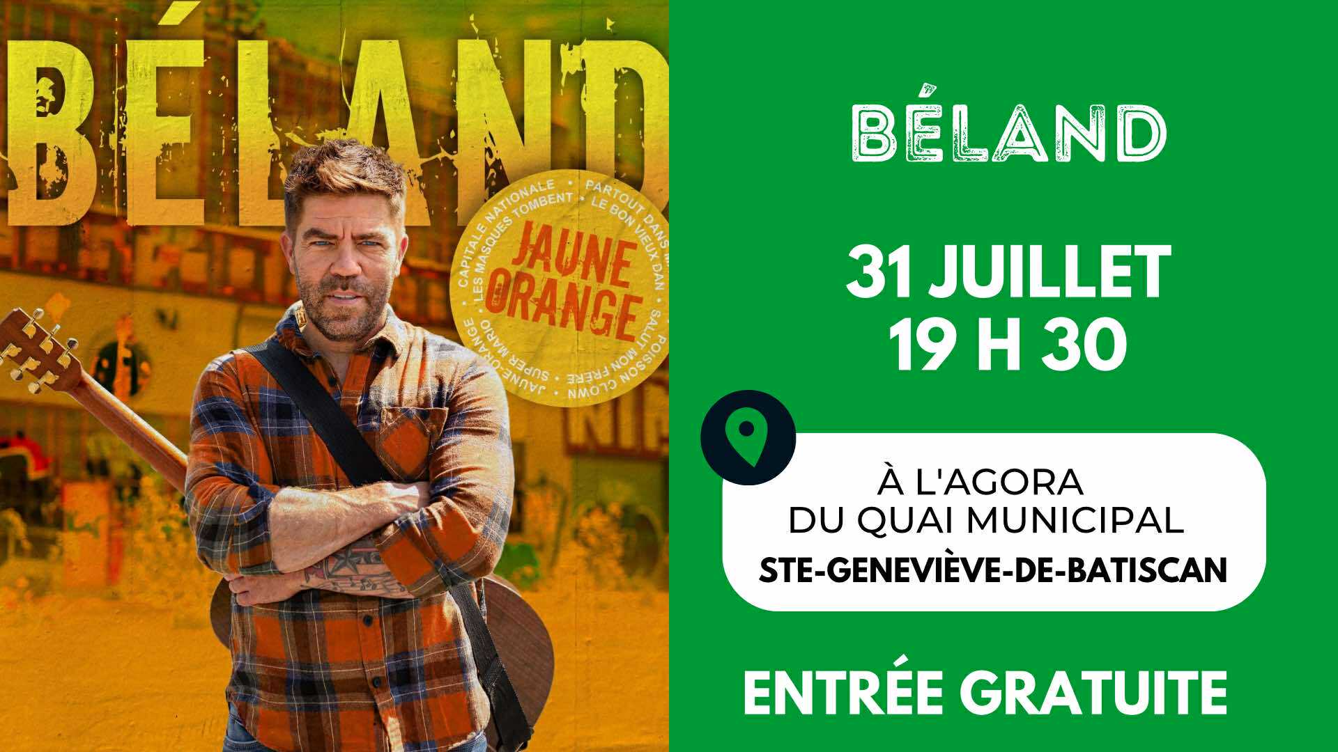 Depuis plus d'une décennie, Béland parcourt les villes du Québec dans le but de présenter son matériel original et de reprendre également de grands classiques. Une belle soirée vous attend !